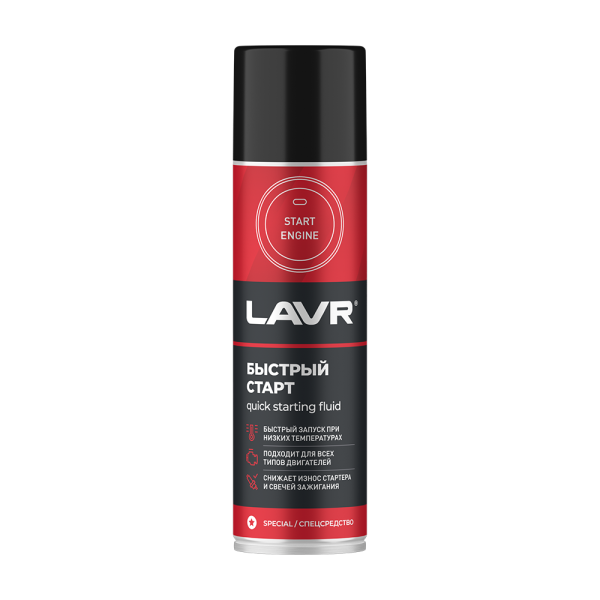 Специализированный аэрозоль облегчает запуск двигателя в условиях низких температур, повышенной влажности и при заправке некачественным топливом.