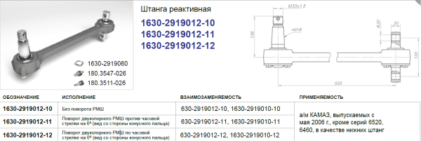 630-2919010-10 - штанга реактивная, расшифровка кодов замены: Не поставляется, поставляется взаимозаменяемая