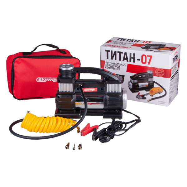 Корпус металлический с удобной ручкой для переноски. Компрессор оснащен манометром и фонариком, который помогает при работе в плохо освещенном месте. В комплекте 3 насадки для накачивания резиновых мячей, игрушек и лодок. Тканевая сумка на молнии обеспечивает удобное хранение и транспортировку.